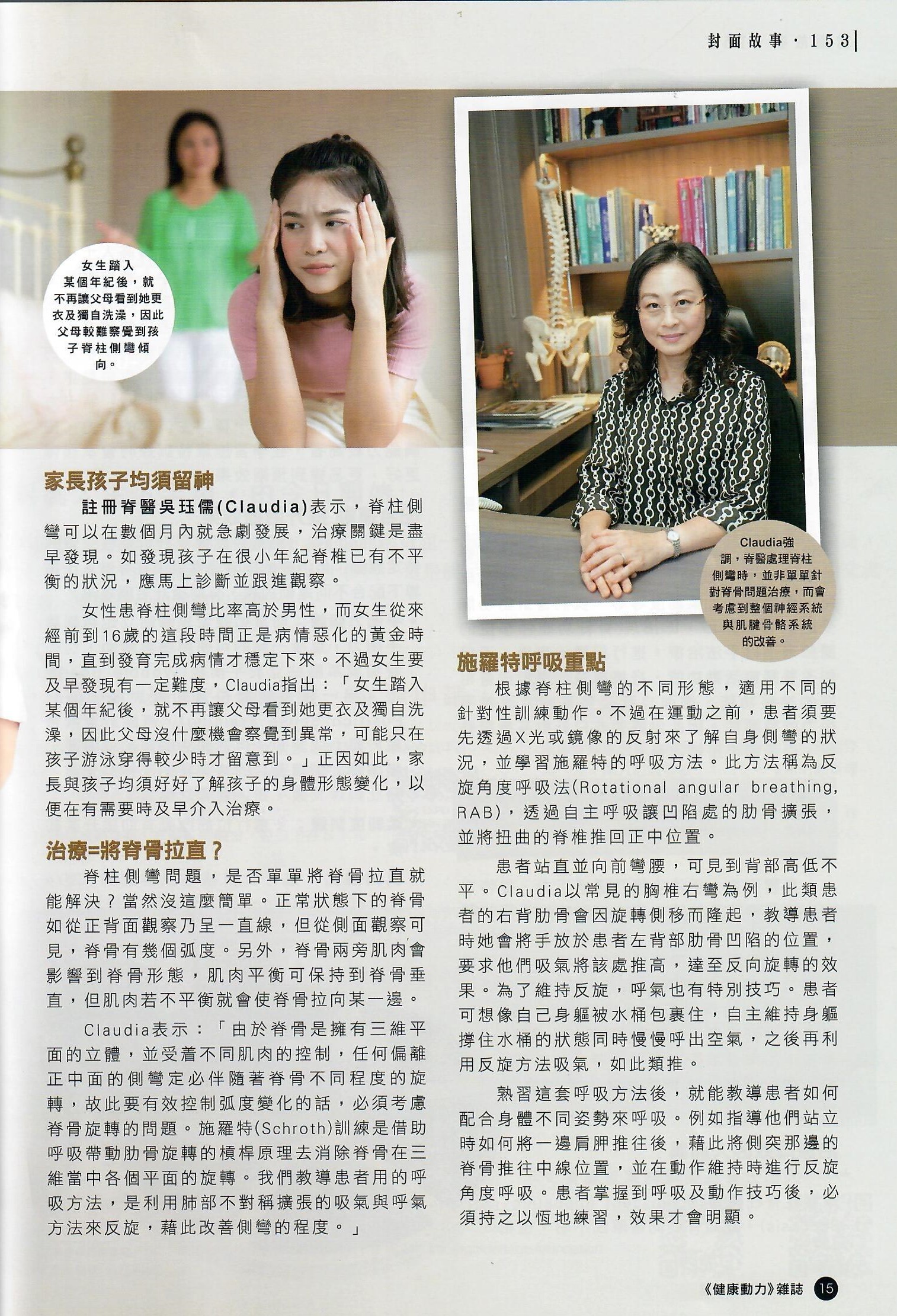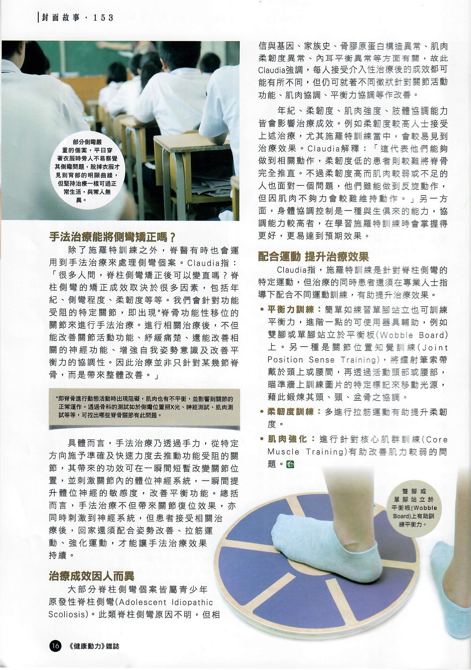 圖二:Claudia强調,香港脊醫處理脊椎側彎時,並非單單針對脊骨問題治療,而會考慮到整個神經系统與肌腱骨骼系統的改善。