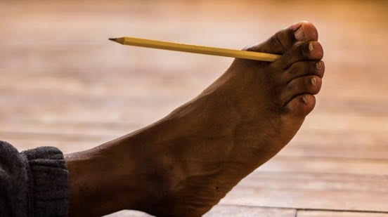 3. 用腳趾夾起筆